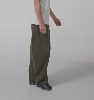 It's wide through the leg, featuring structure and volume. It’s a deliberate shape, built to break from the usual. Cut from heavyweight twill fabric and finished with clean front pockets, ILU-embroidered back patch pockets, and a tonal leather patch at the waistband. Inside, you’ll find our signature pocket print and fly embroidery. Custom gunmetal hardware and a YKK zip front fly round it out.