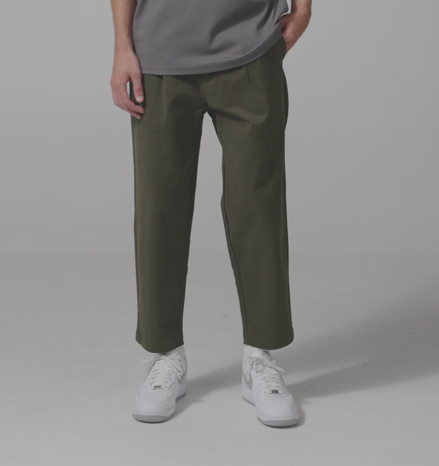 - Pegged silhouette with front pleats