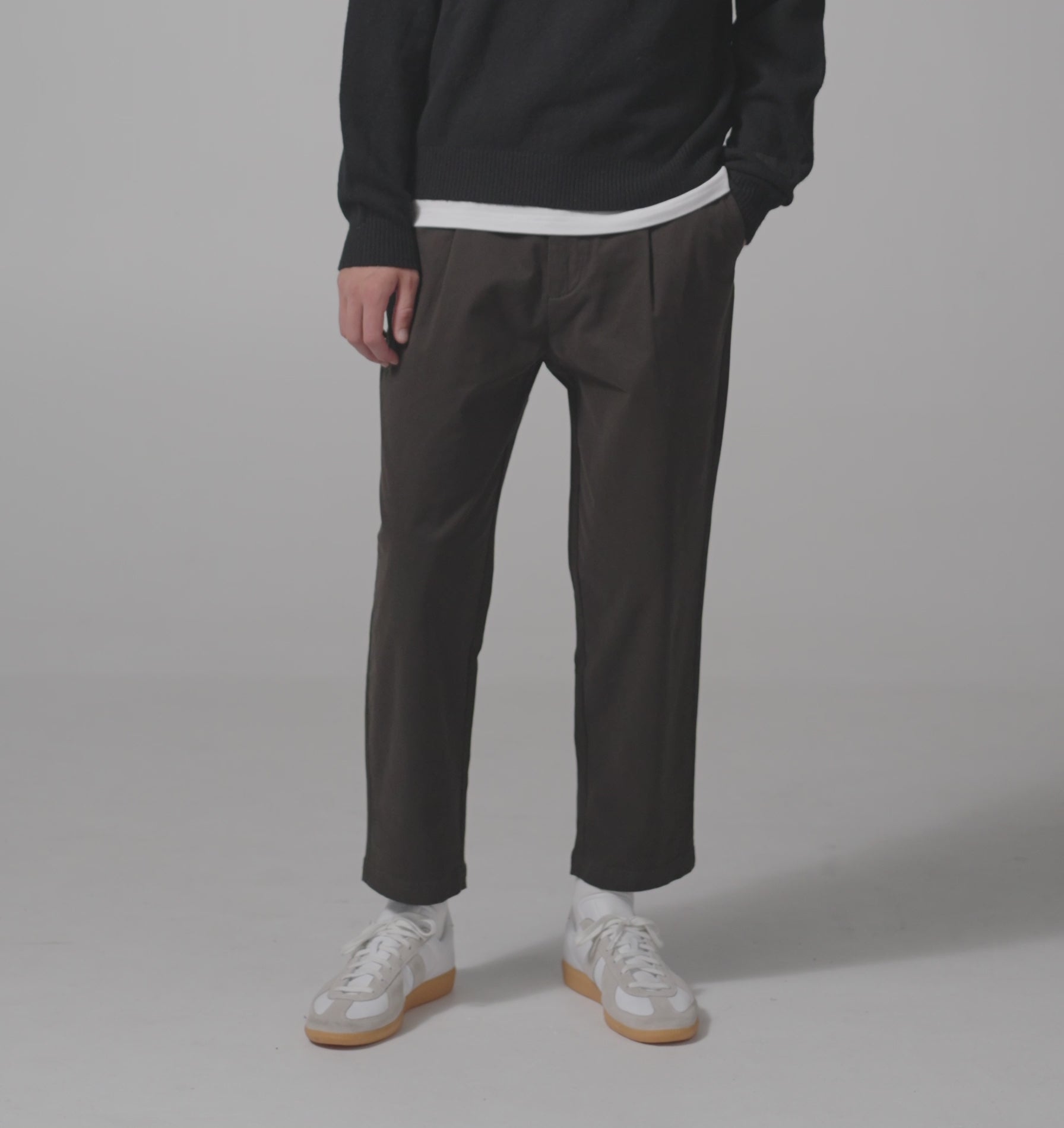 - Pegged silhouette with front pleats