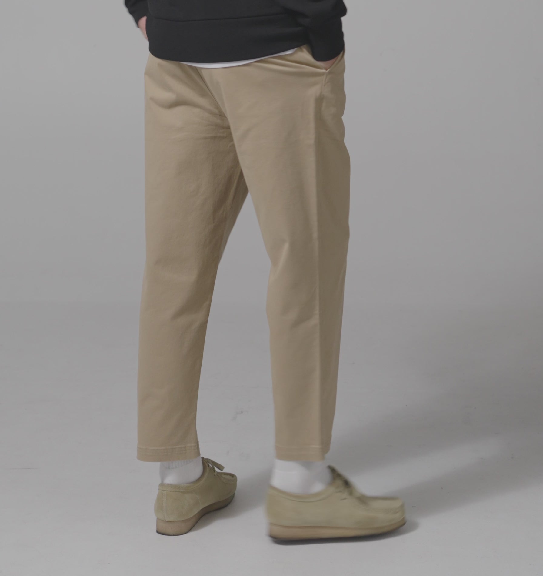 - Pegged silhouette with front pleats